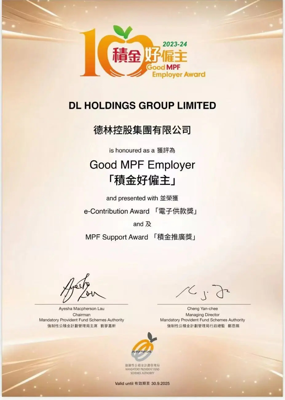 喜报!德林控股获香港积金局“积金好雇主”荣誉
