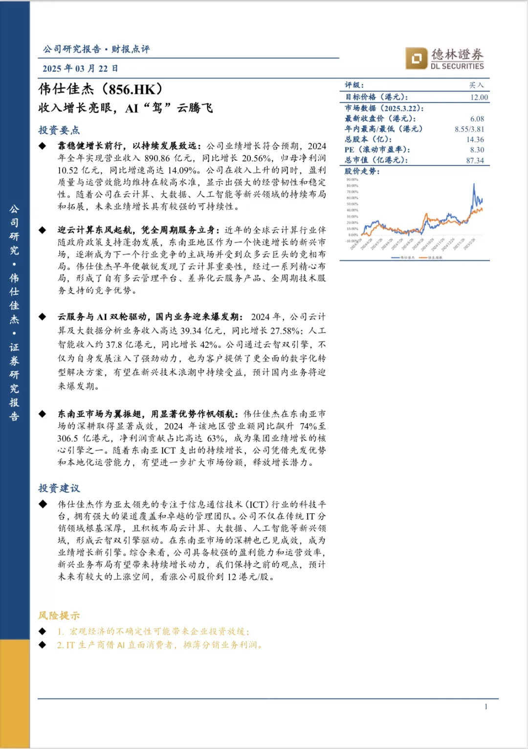 【公司研究报告】伟仕佳杰(856.HK)收入增长亮眼,AI“驾”云腾飞