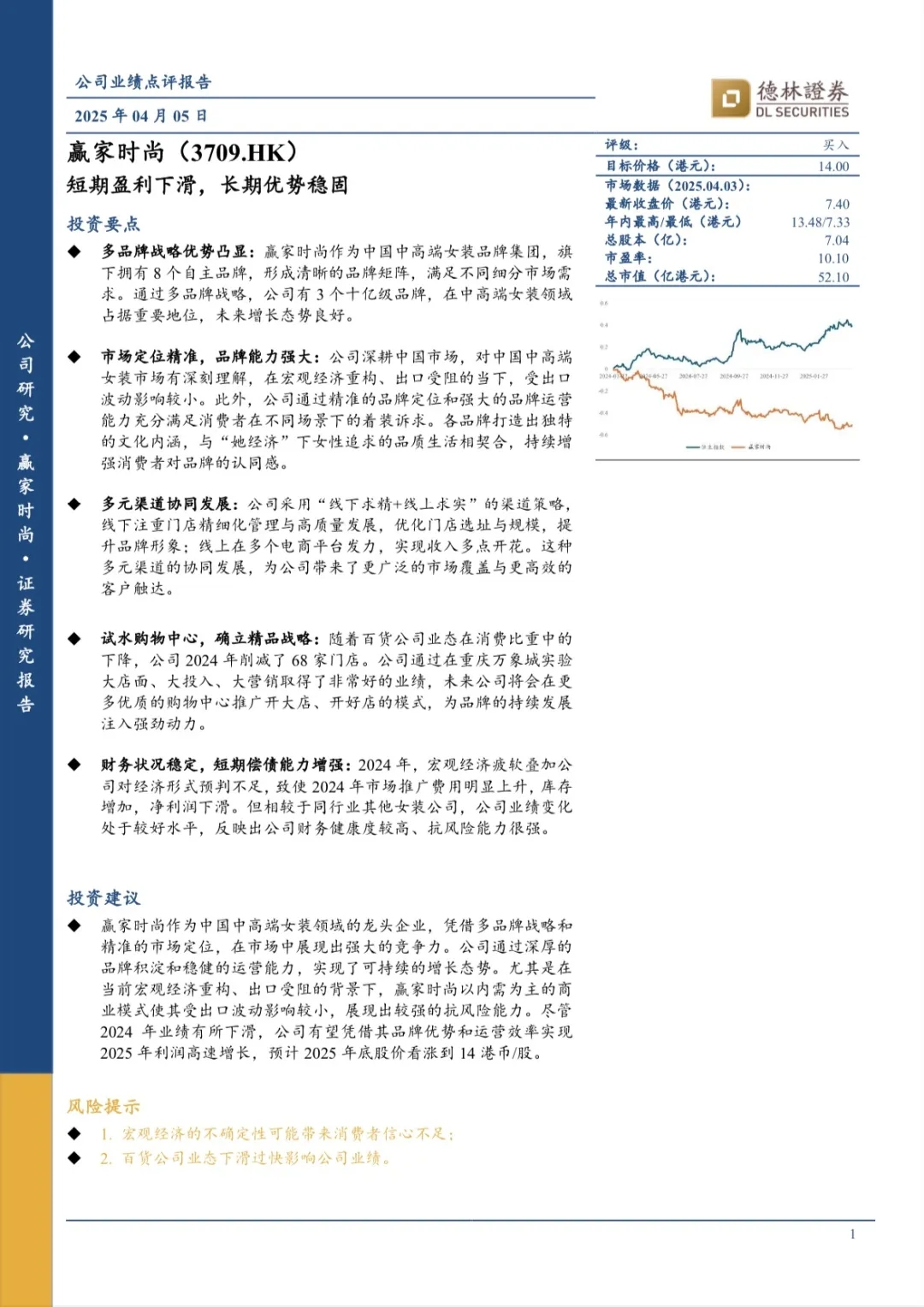 【公司研究报告】赢家时尚(3709.HK)短期盈利下滑,长期优势稳固