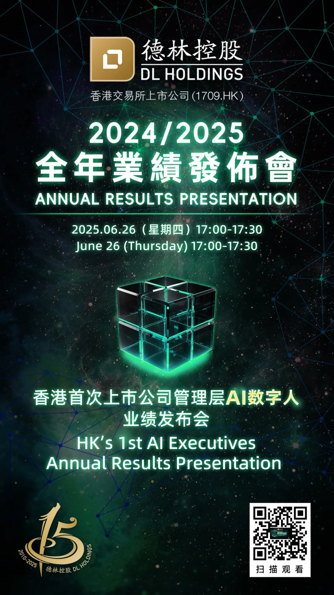德林控股(1709.HK)首次管理层AI数字人业绩发布会即将启幕